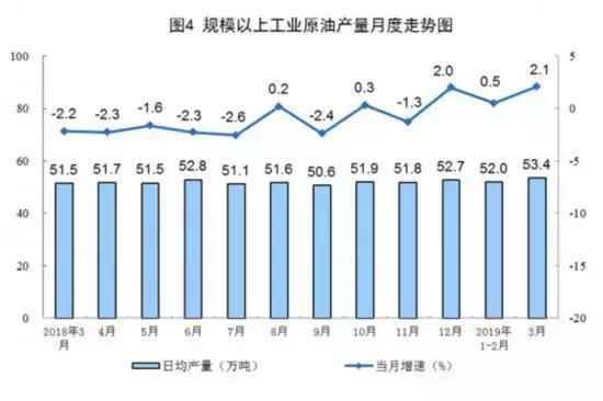 3月份,生产原油1654万吨,同比增长2.1%,增速比1—2月份加快1.6个百分点;日均产量53.4万吨,比1—2月份日均增加1.4万吨。1季度,生产原油4735万吨,同比增长0.6%,去年同期下降2.0%,增速由负转正。