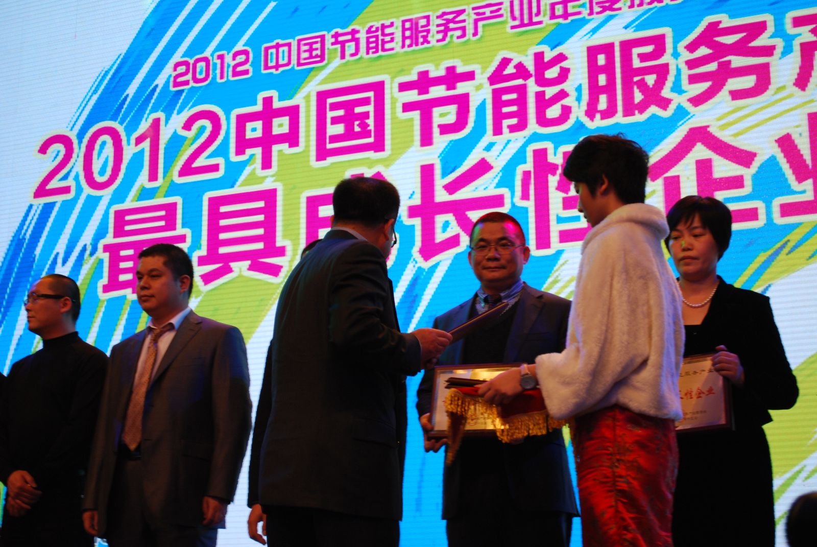 2013年1月15至16日我司郭建涛董事长、技术总监徐平应邀出席了由中国节能协会节能服务产业委员会(EMCA)在北京主办的“2012中国节能服务产业年度峰会”。 截止2012年底,全国从事节能服务业务的企业达4175家,其中,国家发改委、财政部备案节能服务公司2339家,我司脱颖而出荣获“最具成长性企业”荣誉称号。