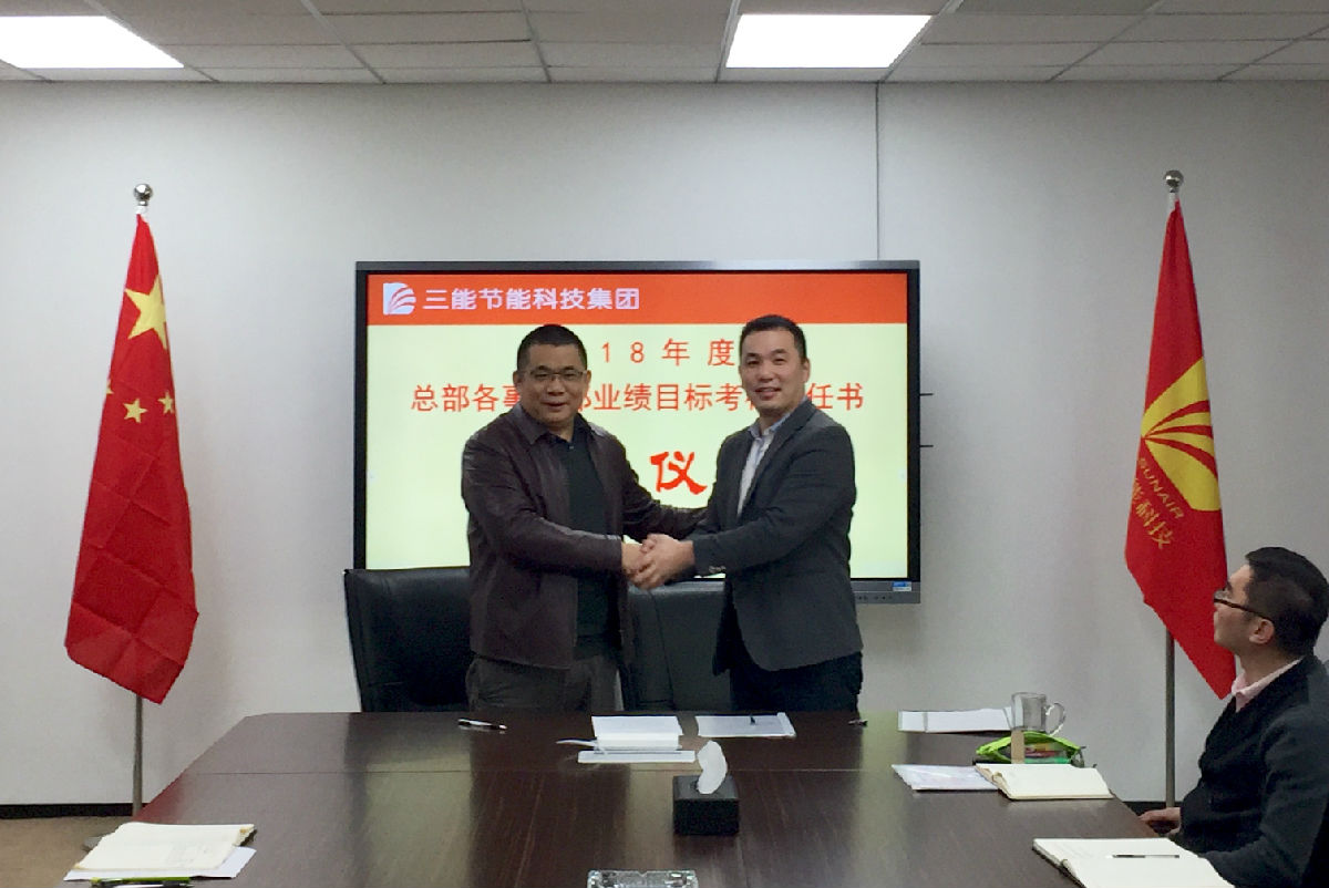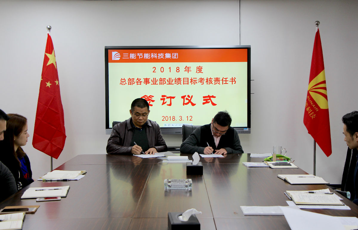 发布时间:2018-03-12 16:42:05 来源:总裁办 作者: 浏览:6103次3月12日上午,2018年度总部事业部业绩目标考核责任书签订仪式在三能节能科技集团会议室举行。