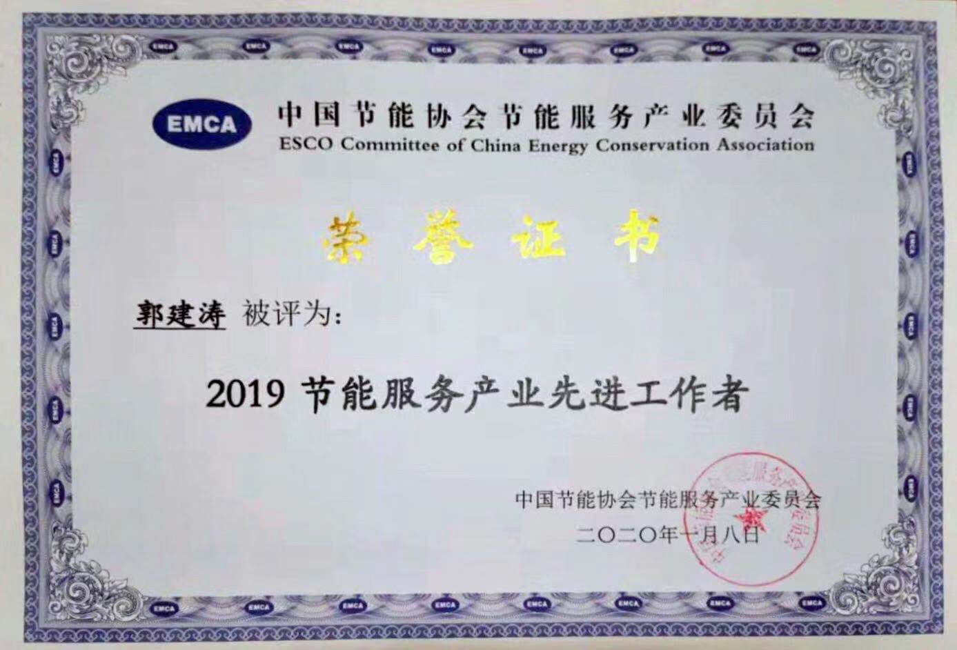 热烈祝贺郭建涛董事长荣膺“2019年节能服务产业先进工作者”殊荣