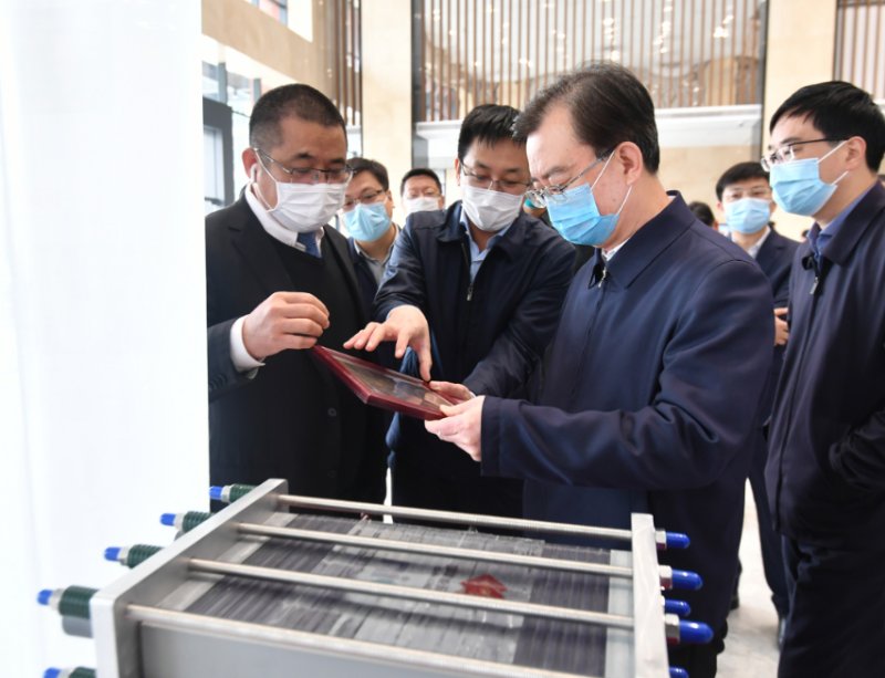 4月7日,郭建涛董事长向福建省委副书记、福州市委书记王宁介绍液流储能电池技术