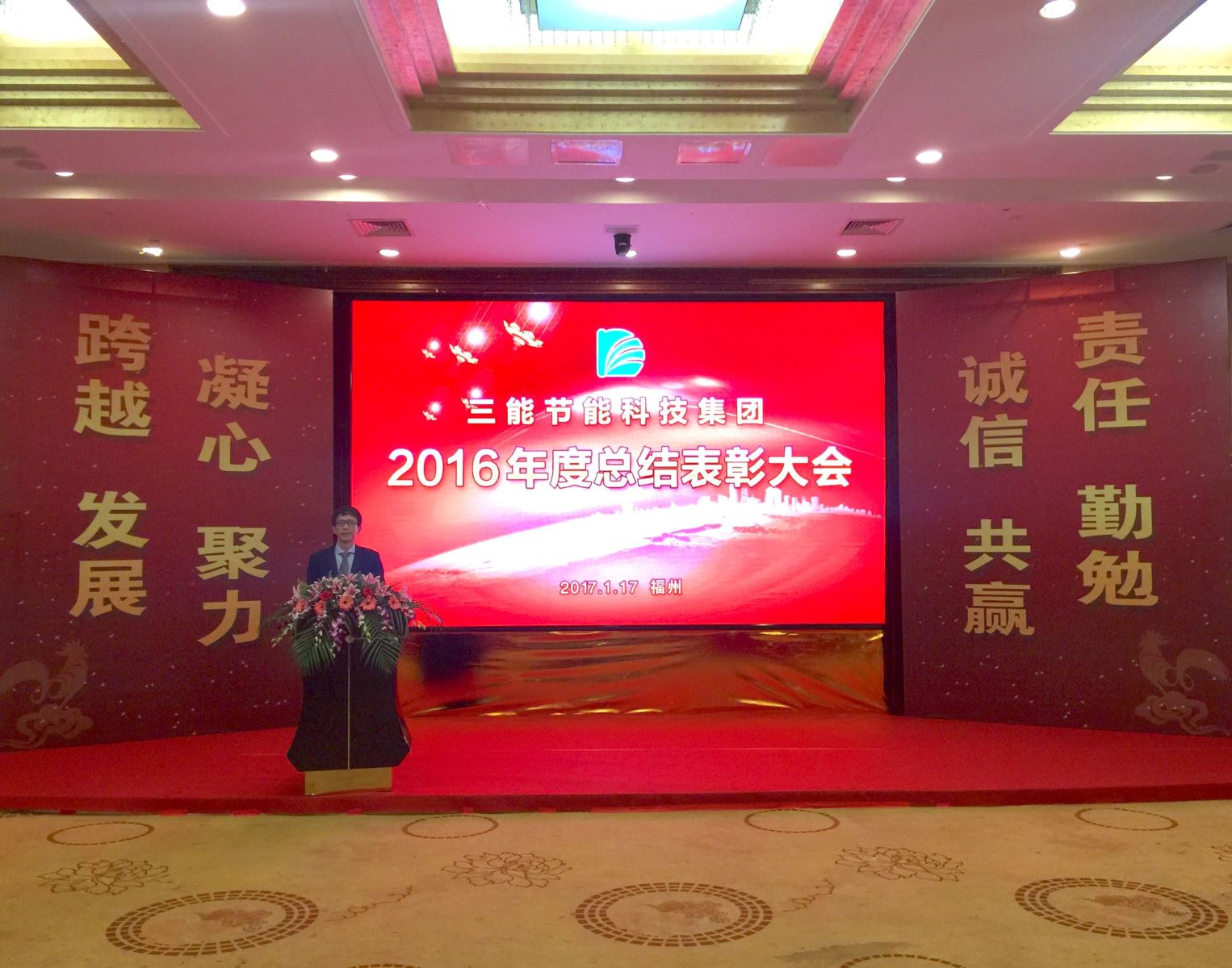 2017年1月17日,三能节能科技集团在位于榕城金牛山麓的龙峰宾馆龙汇厅,隆重举行2016年度总结表彰大会和2017年会盛典。来自全国各地的公司股东代表;长期关心、支持三能事业发展的有关行业协会、金融机构、上市中介机构的领导、嘉宾;集团总部全体员工及各地子公司的员工代表欢聚一堂,共同体验三能科技公司成立以来最大规模的大家庭聚会,共同分享三能事业经过十年发展所取得的丰硕成果,共同辞别辛勤奋斗过的2016年、迎接新春的来临。