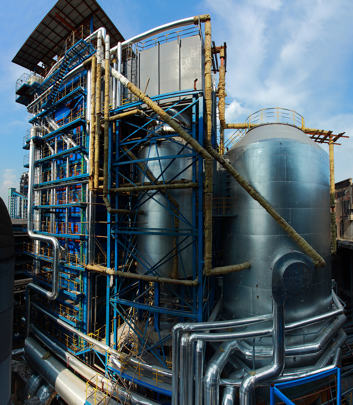 造气三废流化混燃炉是将合成氨、甲醇企业固定床造气炉生产过程中产生的吹风气、造气炉渣、造气除尘器细灰等,掺配部分煤矸石、烟煤或无烟煤沫,在炉内流化燃烧,产生高温烟气集中热量回收的装置,也称第三代造气吹风气回收装置,临沂正大热能研究所于2001年发明了三废混燃炉并工业化,现在三废混燃炉主要有隧道式三废混燃炉、立式三废混燃炉、L型三废混燃炉三种结构形式。
