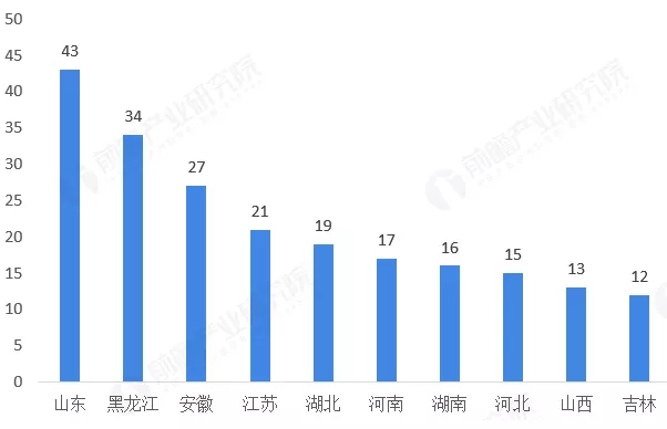 从发电项目分布来看,农林生物质发电项目拥有量最高的是山东省,项目数量高达43个;黑龙江和安徽省的农林生物质发电项目数量分别为34个和27个,分列第二和第三位;此外,江苏、湖北、河南、湖南、河北、山西和吉林省的农林生物质发电项目均位列前10位,项目数量从12个到21个不等。