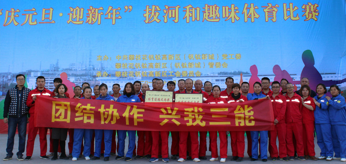 2019年12月31日,为深入推进职工文化体育活动民展,丰富职工文化体育生活,攀枝花钒钛高新技术产业开区举办“庆元旦、迎新春”拔河和趣味体育比赛活动,攀枝花三能公司积极响应园区的号召,组织35名员工代表参加了本次趣味比赛。