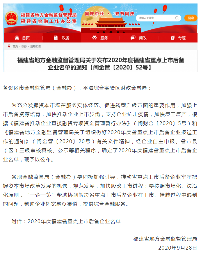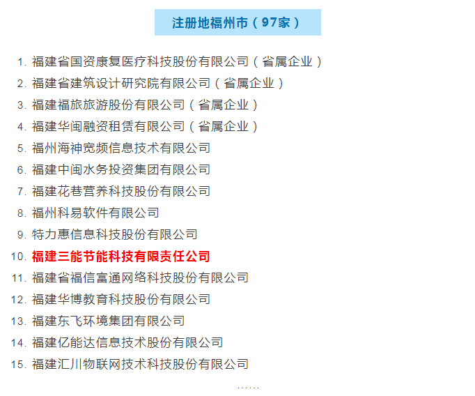 恭贺福建三能公司再次入围2020年福建省重点上市后备企业名单
